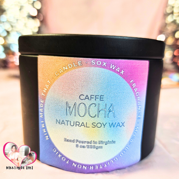 Awaken your senses with the rich, comforting aroma of my Caffe Mocha candle, hand-poured and crafted with love by me, Nikki, under my brand, Nikki Made That. This all-natural soy wax candle captures the essence of your favorite coffee shop, bringing the cozy warmth of a freshly brewed cup of mocha right into your home.